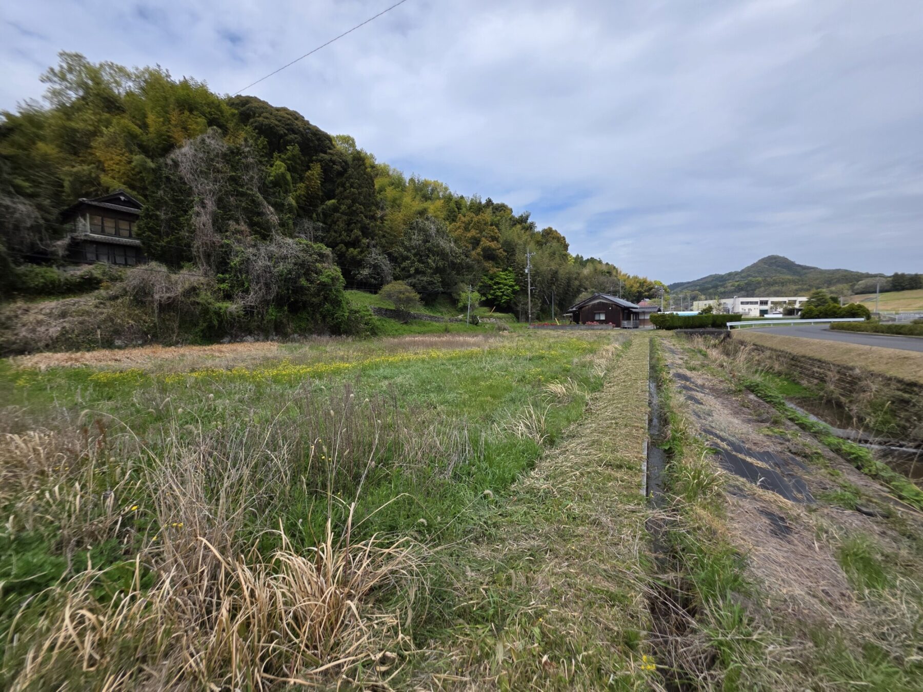 田布施町波野(はの)から、広大な土地のご紹介です。メインは約389坪の田んぼですが、奥には手つかずの自然に囲まれた古家がセットになっています。実はこの場所、春にはタケノコがよく採れるんです。広い敷地で家庭菜園を楽しんだり、遊びながら土地を管理できる方にぴったりな場所です。